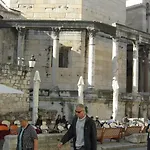 A hotel Split régi részén, a Ježinac strandtól 2 km-re helyezkedik el. A Spliti kikötő továbbá néhány saroknyira fekszik az ingatlantól. A természet szerelmesei értékelni fogják az Adriai-tenger közelségét, amely csaknem 5 perc sétára található. A Peristil 3 km-re teljesen felfrissülhet a Bene tengerpart jóvoltából. A Split városi hotel kőhajításnyira van a Trznica buszmegállótól.